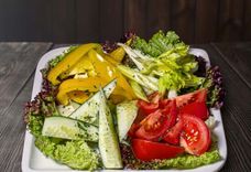 400 г • Ассорти на салатной подушке из овощей: свежие огурцы, томаты, сладкий перец, стебель сельдерея. Заправляется душистым маслом, настоянным на травах