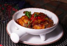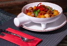350 г • национальное грузинское блюдо из жареного мяса с картофелем, болгарским перцем, томатом, красным луком, чесноком, перцем чили, кинзой и специями