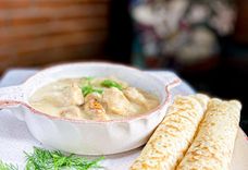 300/140 г • Со свиной грудинкой и домашними колбасками. Подается с толстыми блинами.